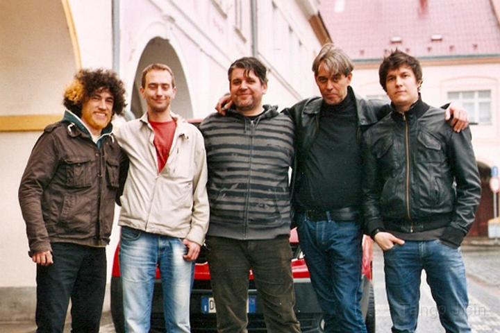 Skupina The Last Fight s Pavlem, Mamutem a Mikešem, venku před Tangem.